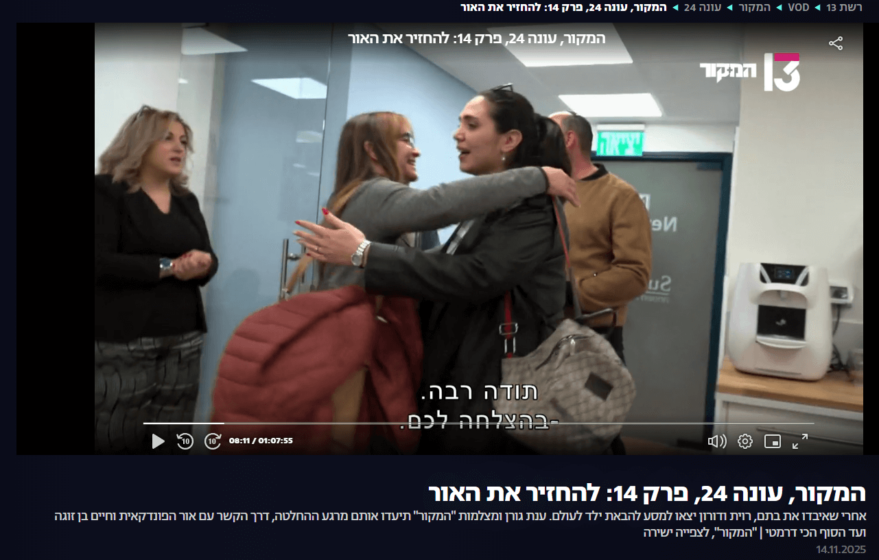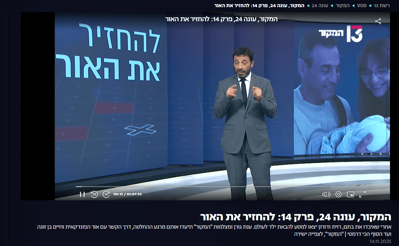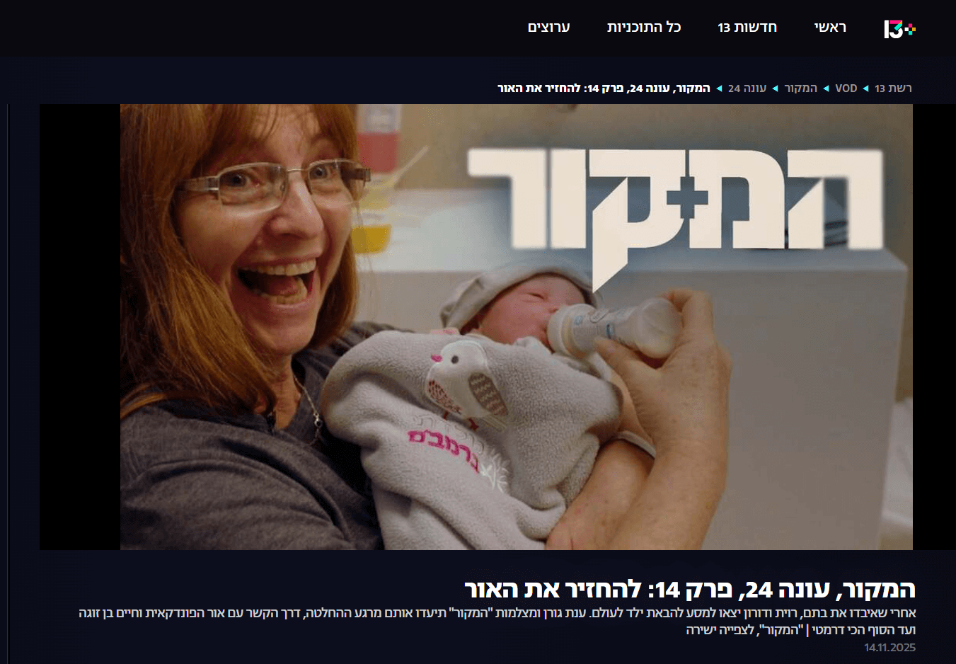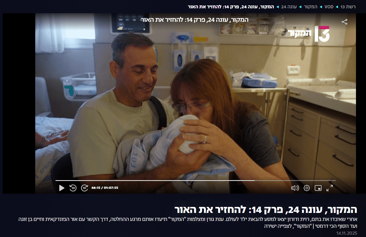 אחרי שאיבדו את בתם, רוית ודורון יצאו למסע להבאת ילד לעולם. ענת גורן ומצלמות "המקור" תיעדו אותם מרגע ההחלטה, דרך הקשר עם אור הפונדקאית וחיים בן זוגה ועד הסוף הכי דרמטי | "המקור", לצפייה ישירה