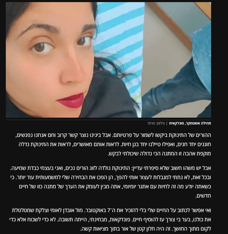 חופשת לידה בלי תינוקת: המסע שלי לפונדקאות - שליחות של לב | תהילה אשטמקר