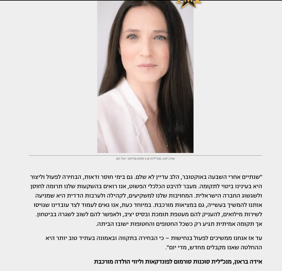 ראיון עם אידה בראון מנכ"לית מרכז סורמום לפונדקאות למגזין "נשים"