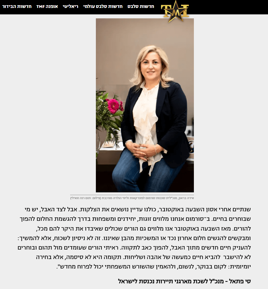 כתבה מאתר לאשה / YNET על אידה בראון והשליחות שלה