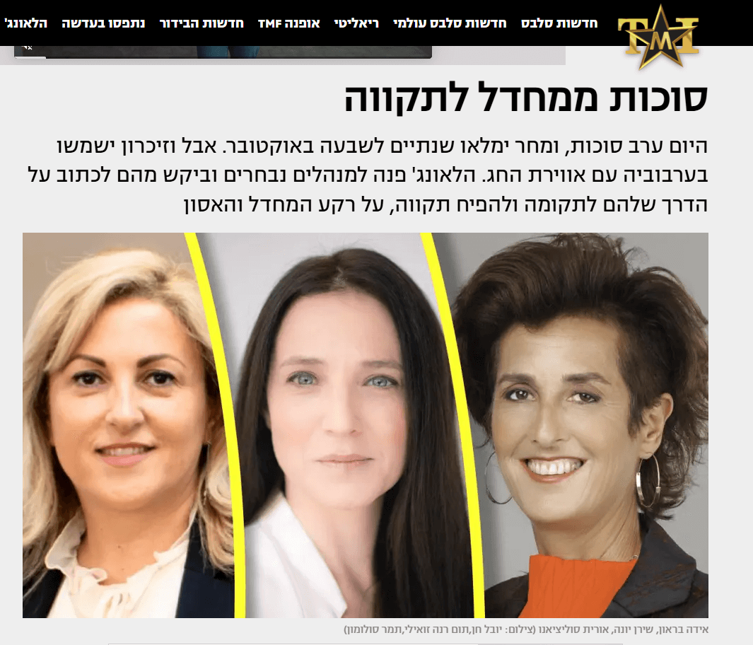 היום ערב סוכות, ומחר ימלאו שנתיים לשבעה באוקטובר. אבל וזיכרון ישמשו בערבוביה עם אווירת החג. הלאונג' פנה למנהלים נבחרים וביקש מהם לכתוב על הדרך שלהם לתקומה ולהפיח תקווה, על רקע המחדל והאסון